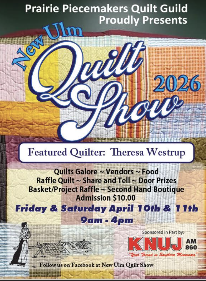 • April 10 – 11, New Ulm Quilt Show 2026, 9 am to 4 pm, Admission $10